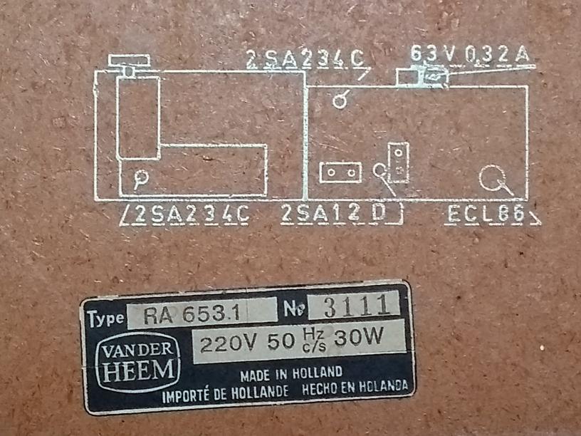 The radio is a hybrid, using transistors in the HF part and a single tube ECL86 as audio amplifier. The continental version RA653 has 6 transistors, three of which are used for FM exclusively, so it comes as no surprise that the RA6531 has three transistors. Supply of the transistors is derived from the B+ voltage for the tubes by means of a resistor voltage divider.