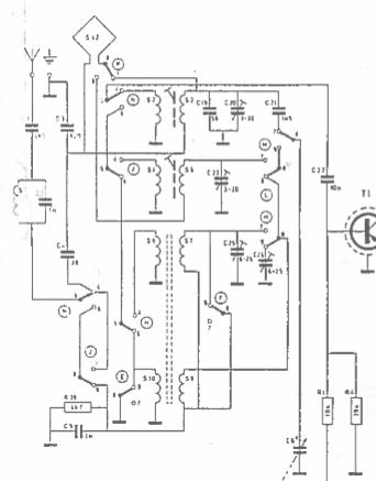 Semi- conductors | 2x 2SA234C (osc/mix, 1st IF), 2SA12D (2nd IF), 1N34A (det.), HR30 (rect.). |