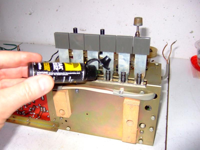 The radio was a little dirty, but worked well, with the only problem being the band switch, of which the buttons would not lock well. I replaced the standard capacitors (coupling, Boucherot, etc) and measured voltages,