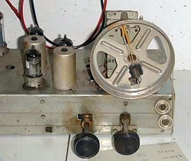 The Erres KY505 is a very standard 1950 radio, like workers' families would have after saving their money for several years. The Van der Heem radios technically ressembled Philips a lot, like all radios in The Netherlands did, But a typical Van der Heem aspect is the large tuning capacitor drive wheel depicted above.