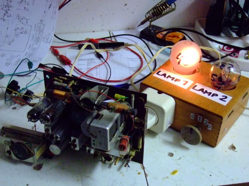 When starting a certain model, put bulbs in the unit of (1) comparable power as the radio and (2) double that power. Start in position 1, the radio only gets a little power then, and you can see if there is no smoke anywhere. When all seems OK, switch the higher bulb, or even D (Direct connection to AC power).