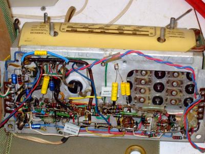 Then I had problems with the B+ voltage. I measured 80V on the first filter cap and 40V on the second; this indicated an extremely large current taken from the plate supply! No tube consumed excessive current, and during my measurements the voltage dropped even further. I then noticed that the filter caps were running hot, so I concluded that they were leaky. Replacing the cap solved the problem.