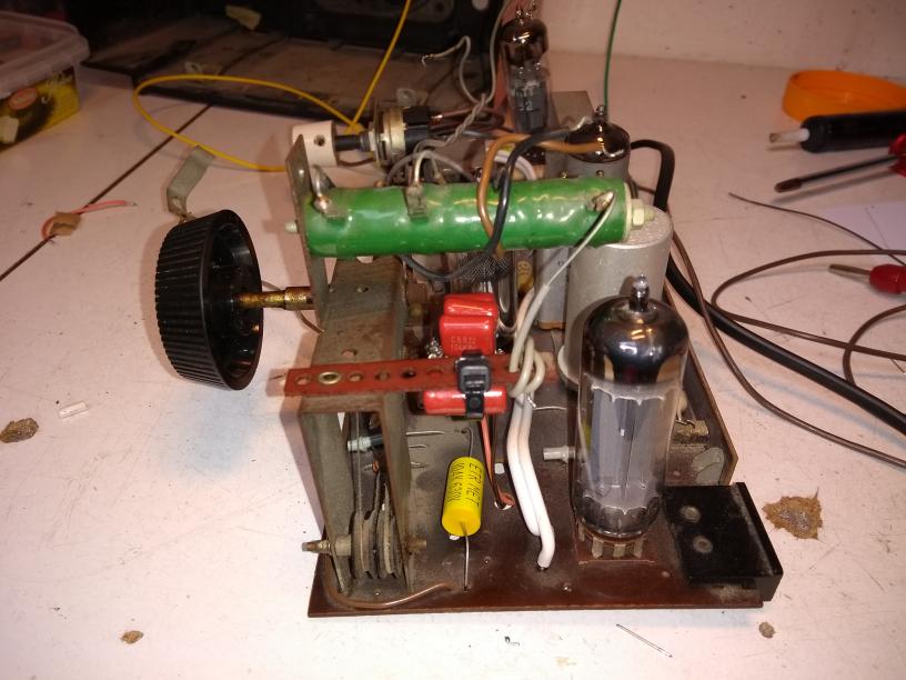 Because I have another similar radio, and this one isn't really top state, I used it for a few experiments. In 2017 I modified the radio to play on 39V DC, as demonstration in a lecture about American AA5 sets. These were sometimes modified to play on 32V DC from wind generators, and I demonstrated that a similar modification is possible for European U-sets. This reduced the power consumption to about 8W, but the reception and sound quality suffer considerably.