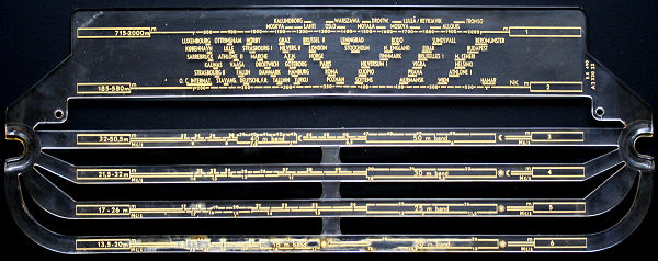 This BX480A, the later BX490, and the BX591A, and BX594A all shared this same dial (and thus, the band coverage!). This picture shows how the dial, illuminated by little bulbs from aside, is uniformly lit and nicely appears to shine in the dark.