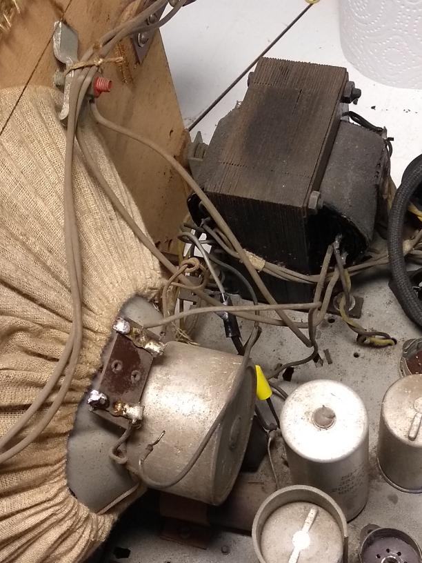 Repairing the radio was not very difficult, but involved replacing the power transformer. This transformer is difficult to reach, becuse of the way the chassis is removed in this radio: you take out the chassis complete with loud speaker board and speaker. My spare transformer had different windings, notably no 4V winding, so I mounted two 1N4007 diodes to replace the AZ1 rectifier. Some capacitors were replaced, and I got sound from the radio quite easily.