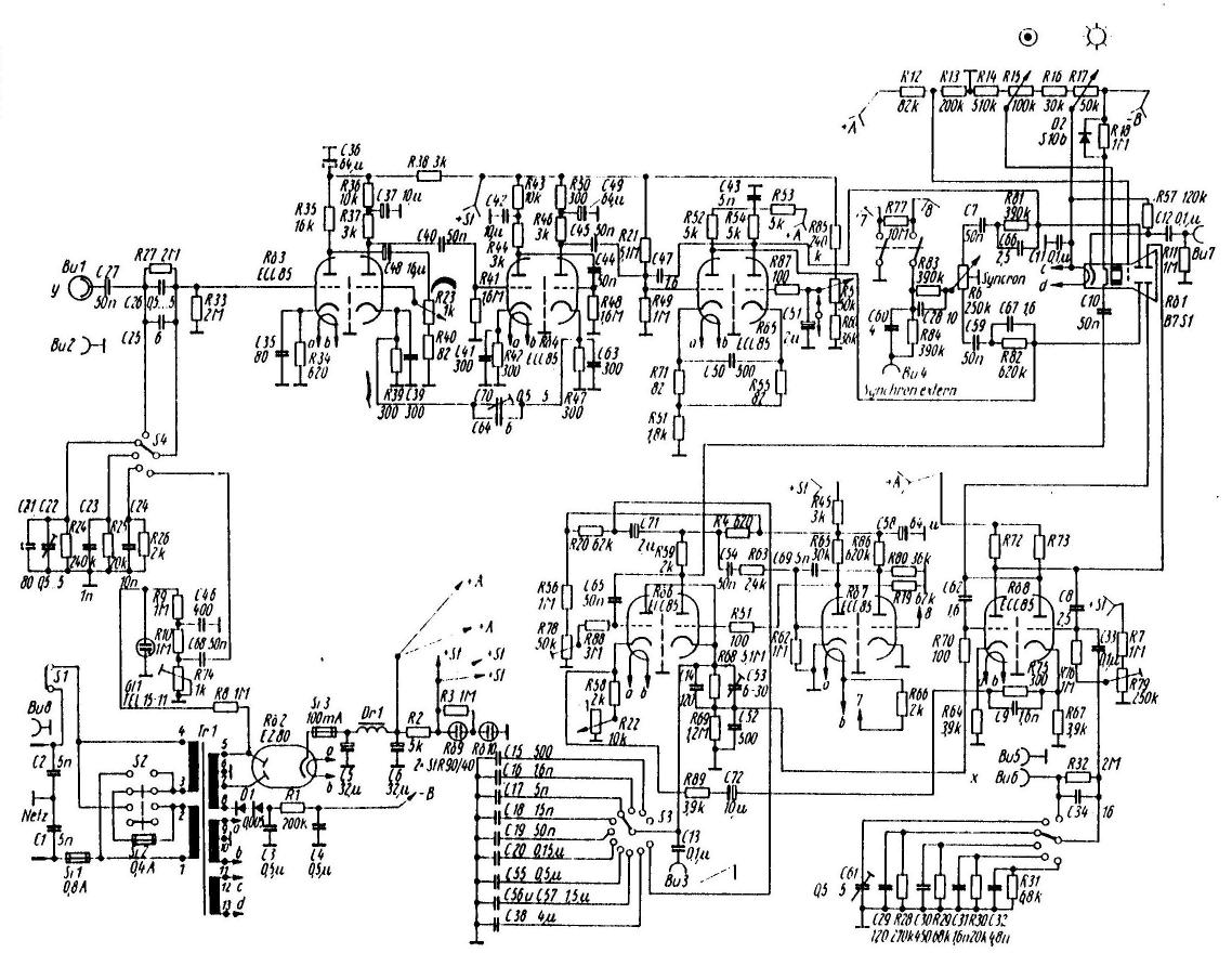 Tubes | 6xECC85 (circuits), EZ80 (rectifier), B7S1 (picture tube). |