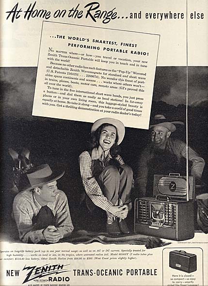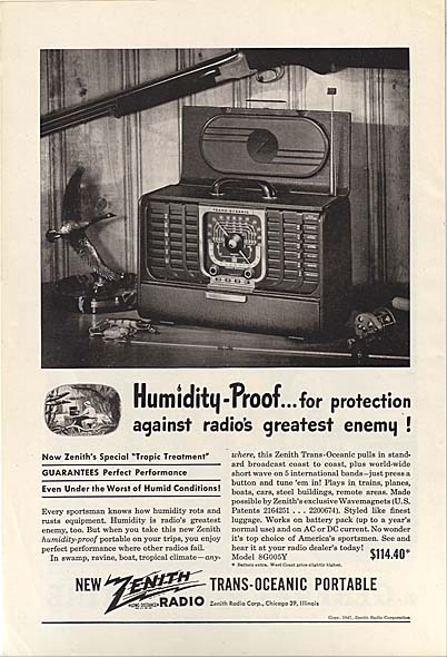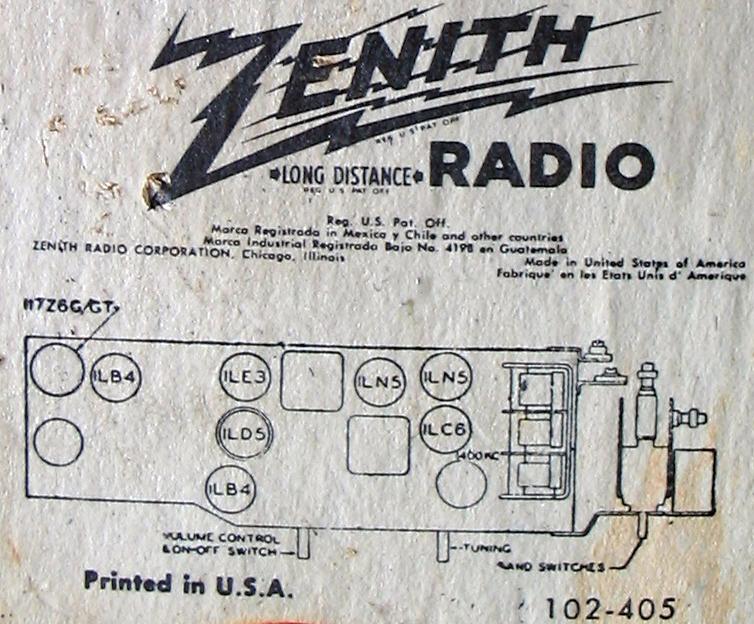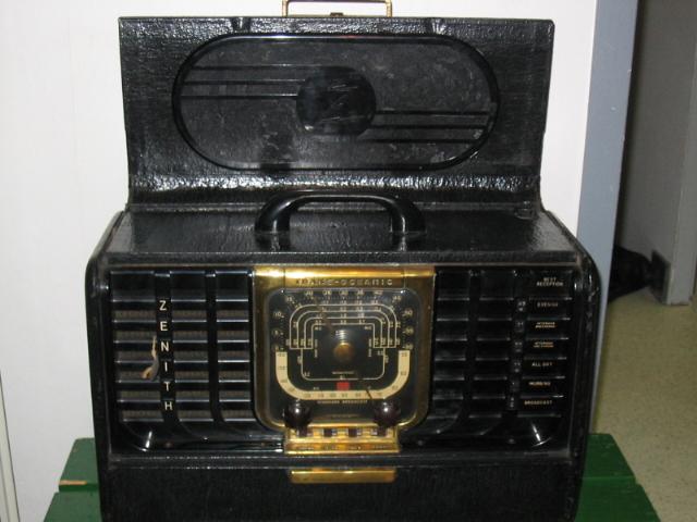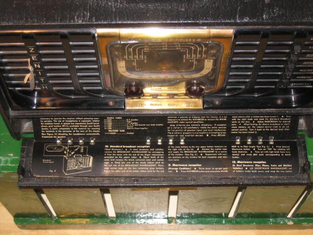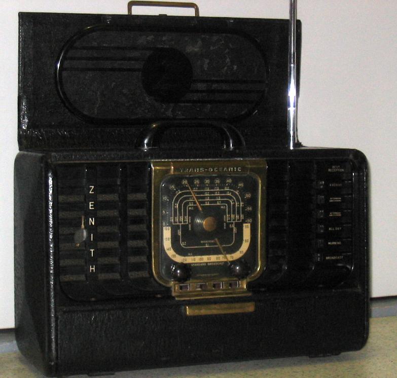 The 8G005 was the second line of Zenith TransOceanics, produced between 1947 and 1950. It is the model with highest tube count (8) because it has both a push-pull output, and a tube rectifier for mains operation.